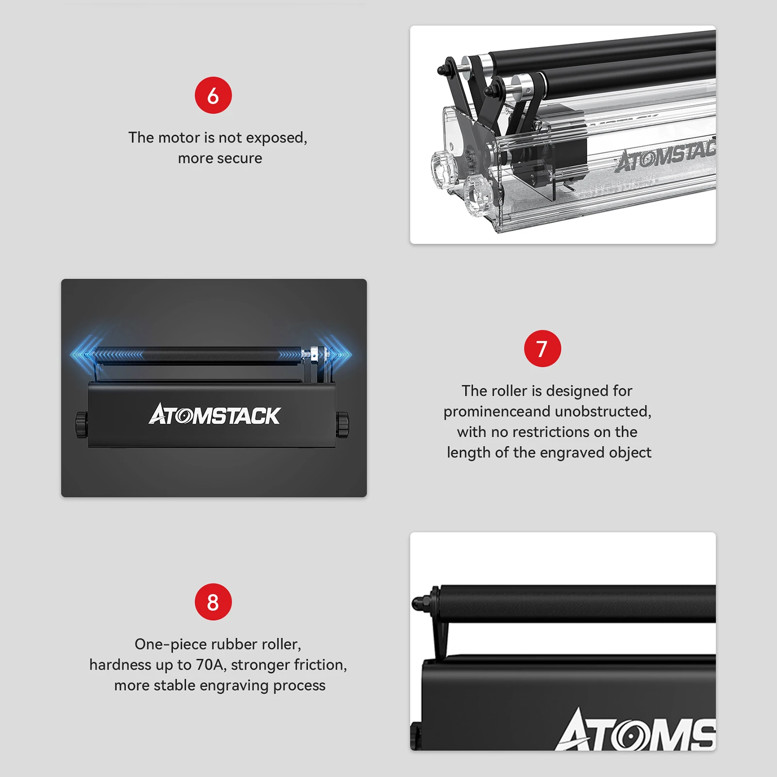 ATOMSTACK R3 PRO Roller vir silindriese onreëlmatige voorwerpe 360° roterende gravure-as 8 hoekaanpassings Steunraamgraveer (10006986)