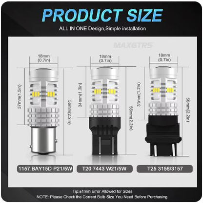 Looking to brighten up your vehicle and stand out on the road? Look no further than the MAXGTRS 7443 W21/5W T20 Double Contact Led Bulb! This high-quality LED bulb is designed to provide superior brightness and visibility, making your ride not only safer but also more stylish. Say goodbye to dull, outdated lighting and upgrade to MAXGTRS for a truly illuminating experience!