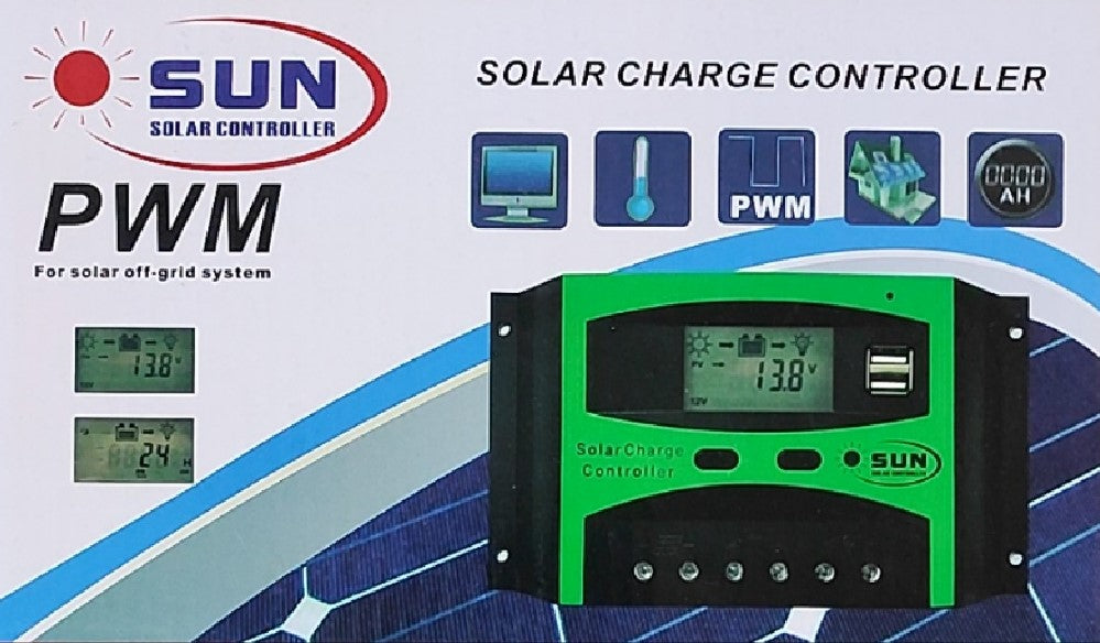 The 30Amp 12/24V + 5v 1Amp USB Out Solar Charge Controller PWM efficiently charges your batteries from solar panels while also providing a USB output for your devices. Perfect for off-grid applications. This solar charge controller is a kind of intelligent, multi-functional solar charge and discharge controller. Use PWM charge mode, which can improve system efficiency and prolong the life span of the battery.