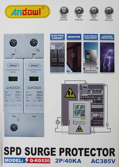 The Andowl Q-KG520 2Pole 40KA DIN Rail 1.8kv Surge Protector is a reliable and efficient device designed to protect sensitive electrical equipment from power surges. With a maximum surge capacity of 40KA and a voltage rating of 1.8kv, this surge protector offers ultimate protection for industrial and commercial applications. It is equipped with a DIN rail mount, making it easy to install and integrate into existing electrical systems. The 2Pole design ensures optimal performance and provides protection for both live and neutral lines. This surge protector is ideal for safeguarding sensitive electronics, such as computers, servers, and telecommunications equipment, against transient voltage spikes. Trust the Andowl Q-KG520 Surge Protector to keep your valuable equipment safe and prevent costly damage caused by power surges.