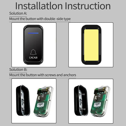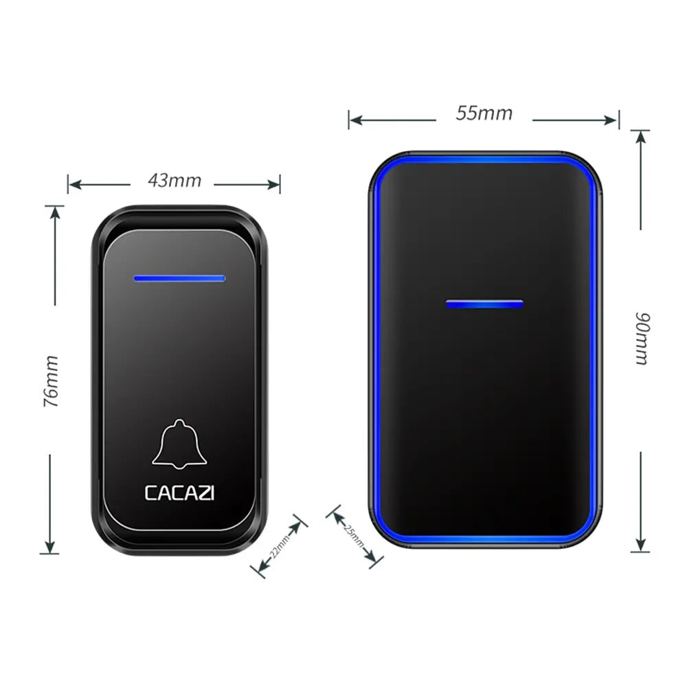 CACAZI 300M Remote Waterproof LED Indicator EU Plug Smart Calling Wireless Doorbell - BLACK (10003915)