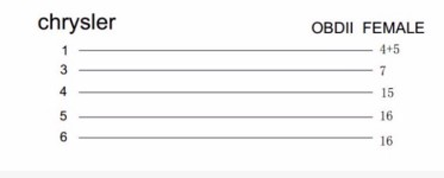 Chrysler 6pin to OBD2 connector Cable Length: 40CM Chrysler 6-pin special car adapter cable, can let 6-pin car obd interface convert to OBD2 16pin-type common interface, use with OBD2 series of diagnostic equipment, fault repair instrument to testing.