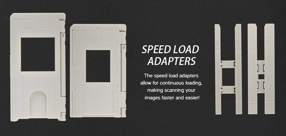 The speed load adapters allow for continuous loading, scan negatives in rolls, no need to cut into 6-pc frames.Film and slides move effortlessly through the gadget’s loading dock, providing faster, smoother performance, making scanning your images faster and easier! The scanned images will be automatically cut off a little bit on four sides in order to remove the shade background, Just a little bit, it doesn't matter.