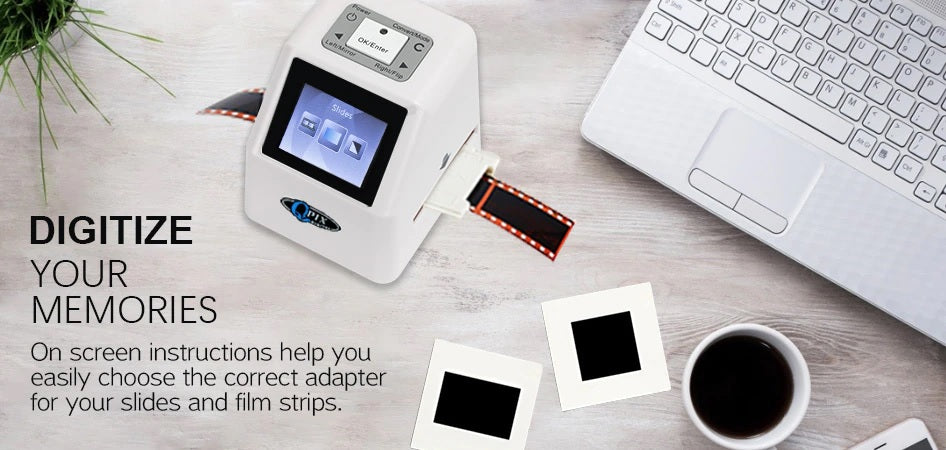 On screen instructions help you easily choose the correct adapter for your slides and film strips.