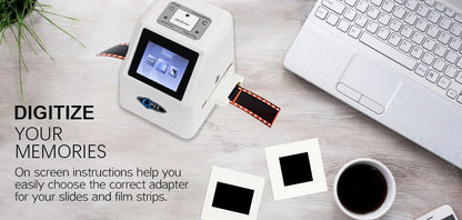 The digital film and slide scanner effortlessly converts your 35mm/135, 110, 126Kpk and super 8 films, slides & negatives into sharp, clear, detailed color or black & white JPEG files. Still images only, not video. Relive and share your memories in no time with only the push of a button.