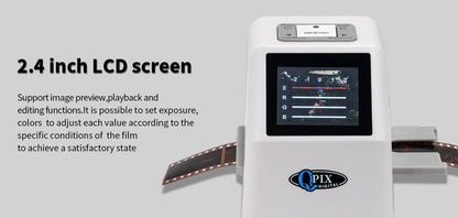 Our digital film scanner has a built-in, vibrant full color, 2.4 inch LCD screen, you can view and edit photos right on the slide & film scanner, so there’s no need for secondary software. If you accidentally load film upside down or inverted, use the flip and reverse functions to change orientation. Editing tools allow you to adjust RGB levels [red, green, blue]. And certain films allow you to enhance resolution from 14 to 22 megapixels.