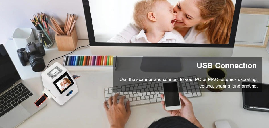 The film slide scanner is suitable for office and home application, portable and mini size keeps your precious photo eternity.