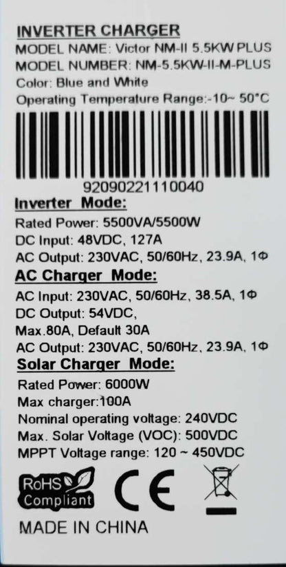 Warranty: All inverters and batteries must be installed by a qualified electrical wireman or Master electrician with a valid registration with the Department of Labour. A valid electrical certificate of compliance (COC) must be issued once installed, specific to the installation of the backup or solar system. The installation must be compliant with SANS 10142 and ALL its parts. Any warranty claim submitted without installation photos, a valid COC and proof of a qualified wireman/master electrician installing the unit, can be rejected and will render the warranty claim null at void.