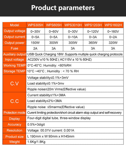 Wanptek Adjustable DC power supply 30V 10A USB Digital Lab Bench Power Supply