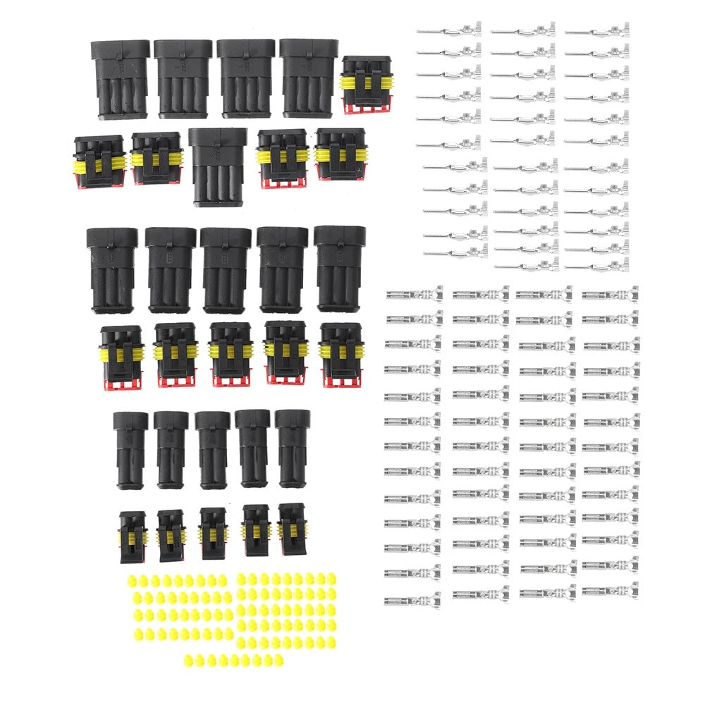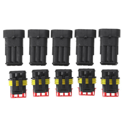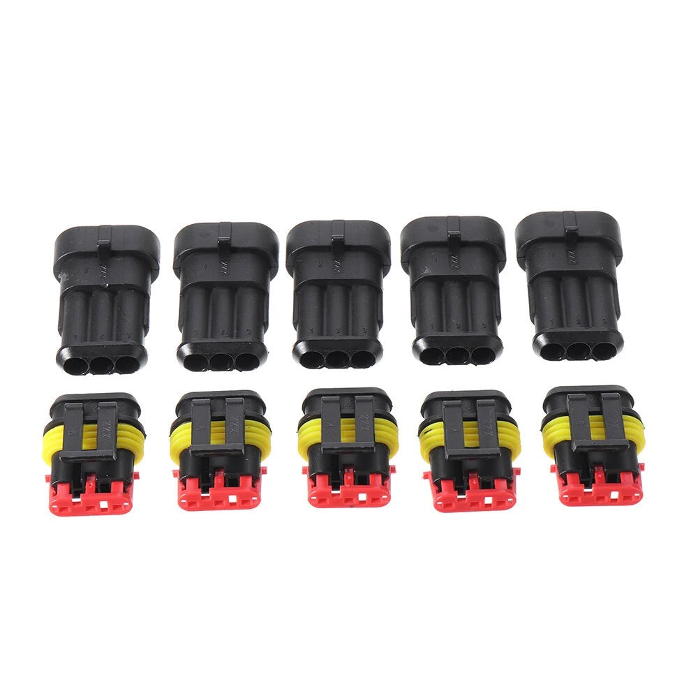 *5 sets of 3 Pins Connectors includes: 5*Male Connector Housings + 5*Female Connector Housings + 15*Male Pins + 15*Female Pins + 30*Silicone Waterproof Plugs
