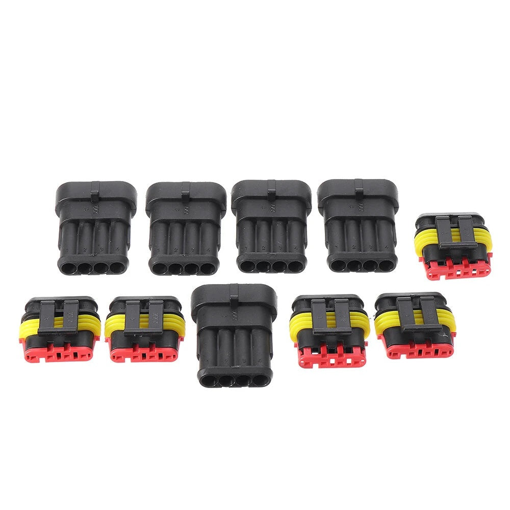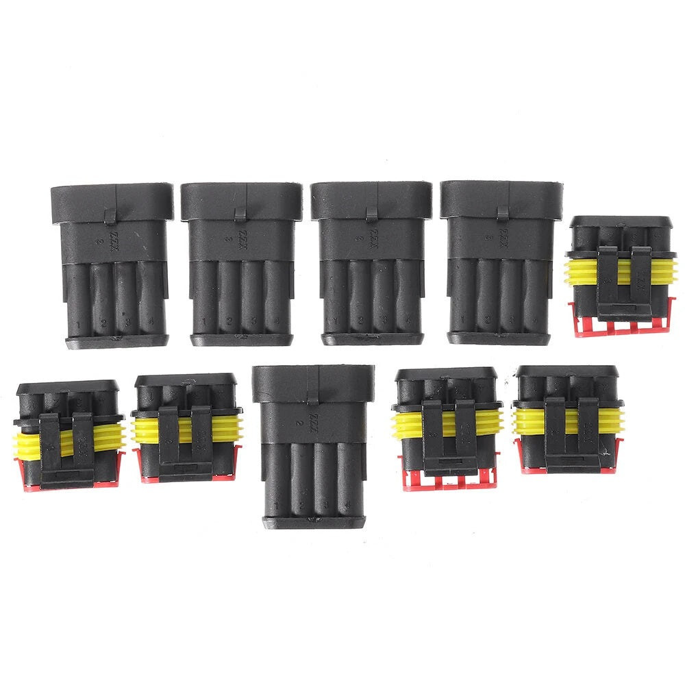 *5 sets of 4 Pins Connectors includes: 5*Male Connector Housings + 5*Female Connector Housings + 20*Male Pins + 20*Female Pins + 40*Silicone Waterproof Plugs