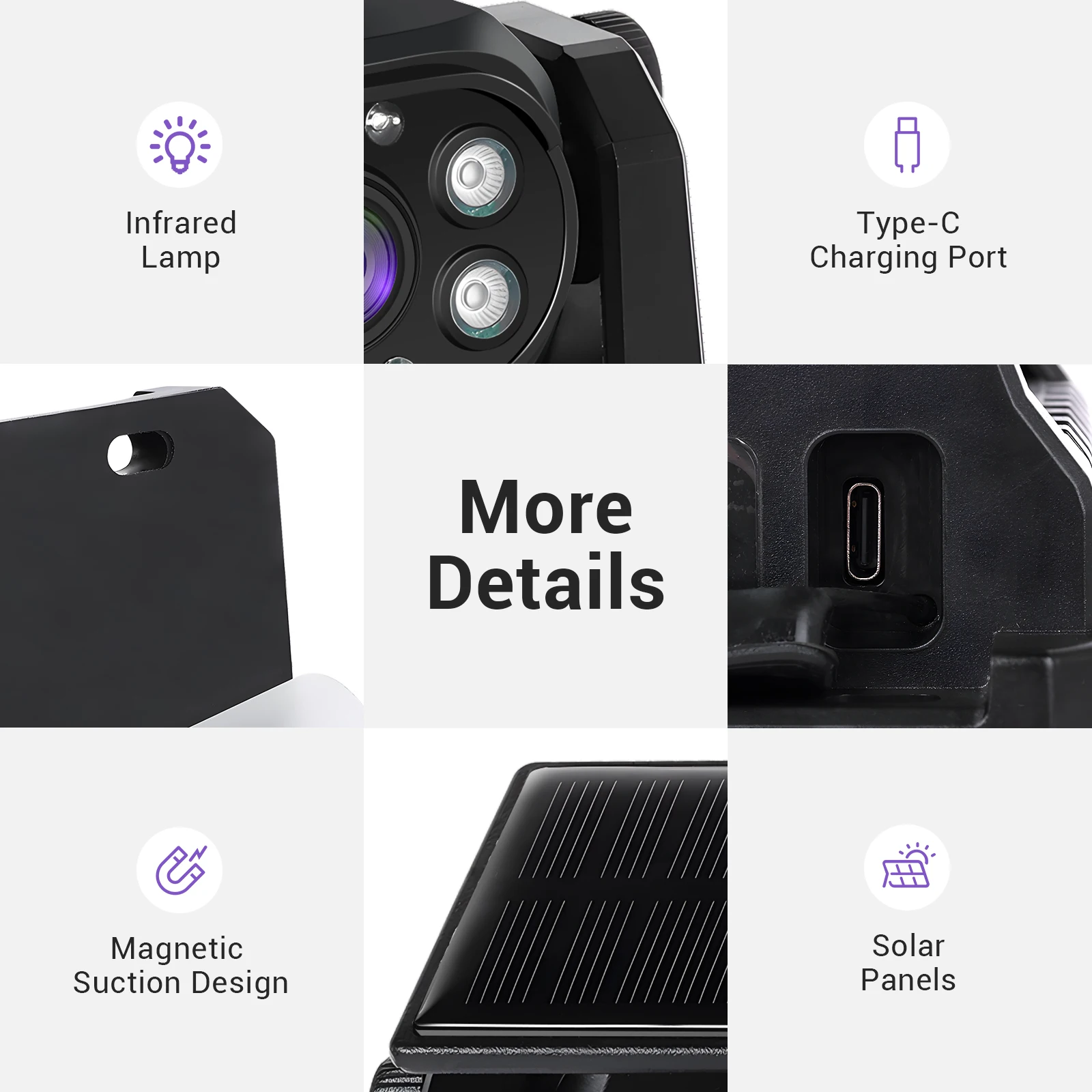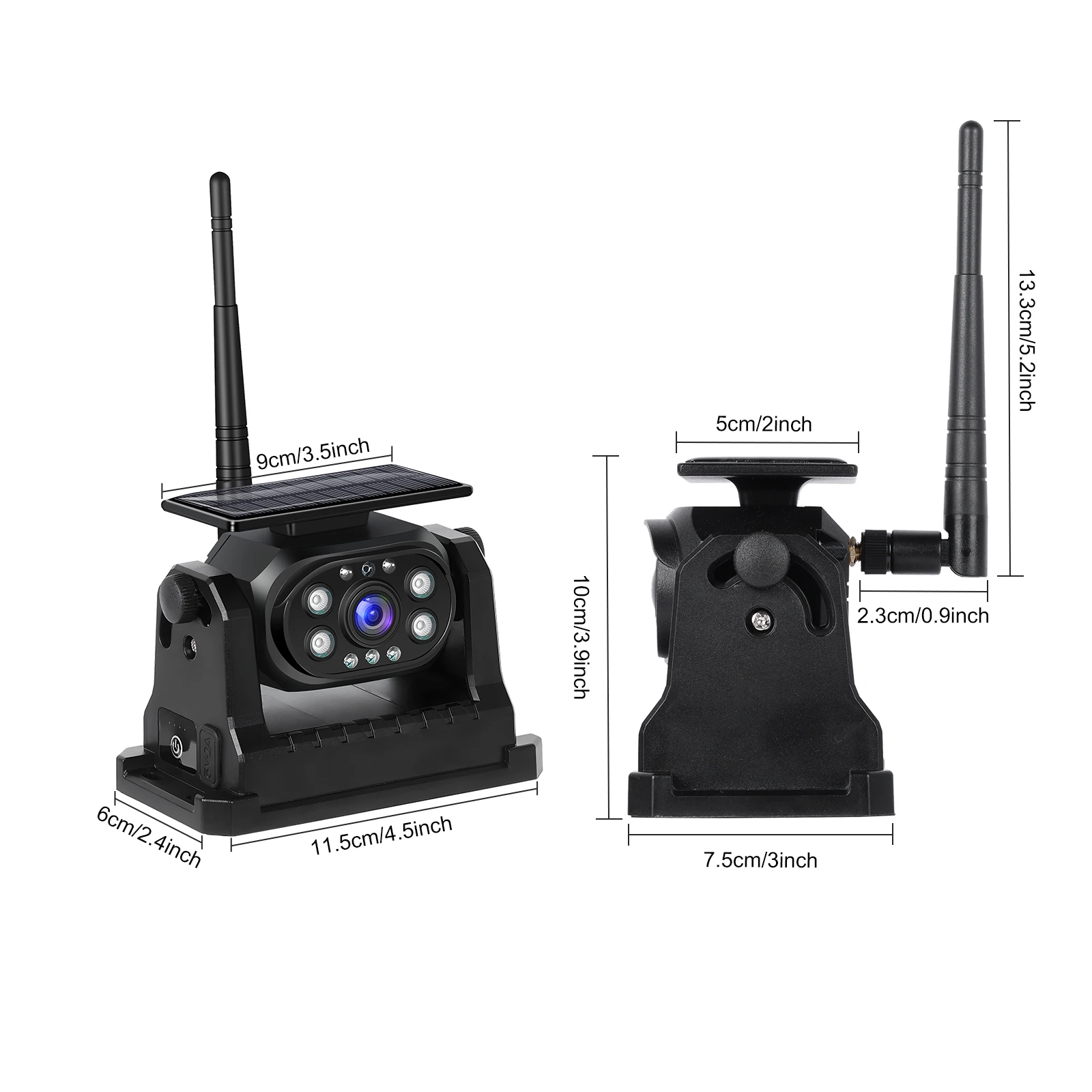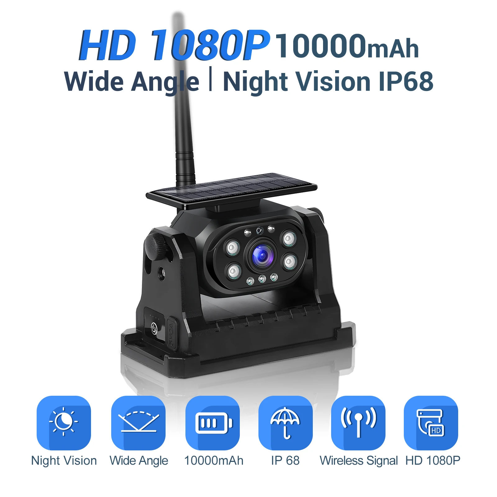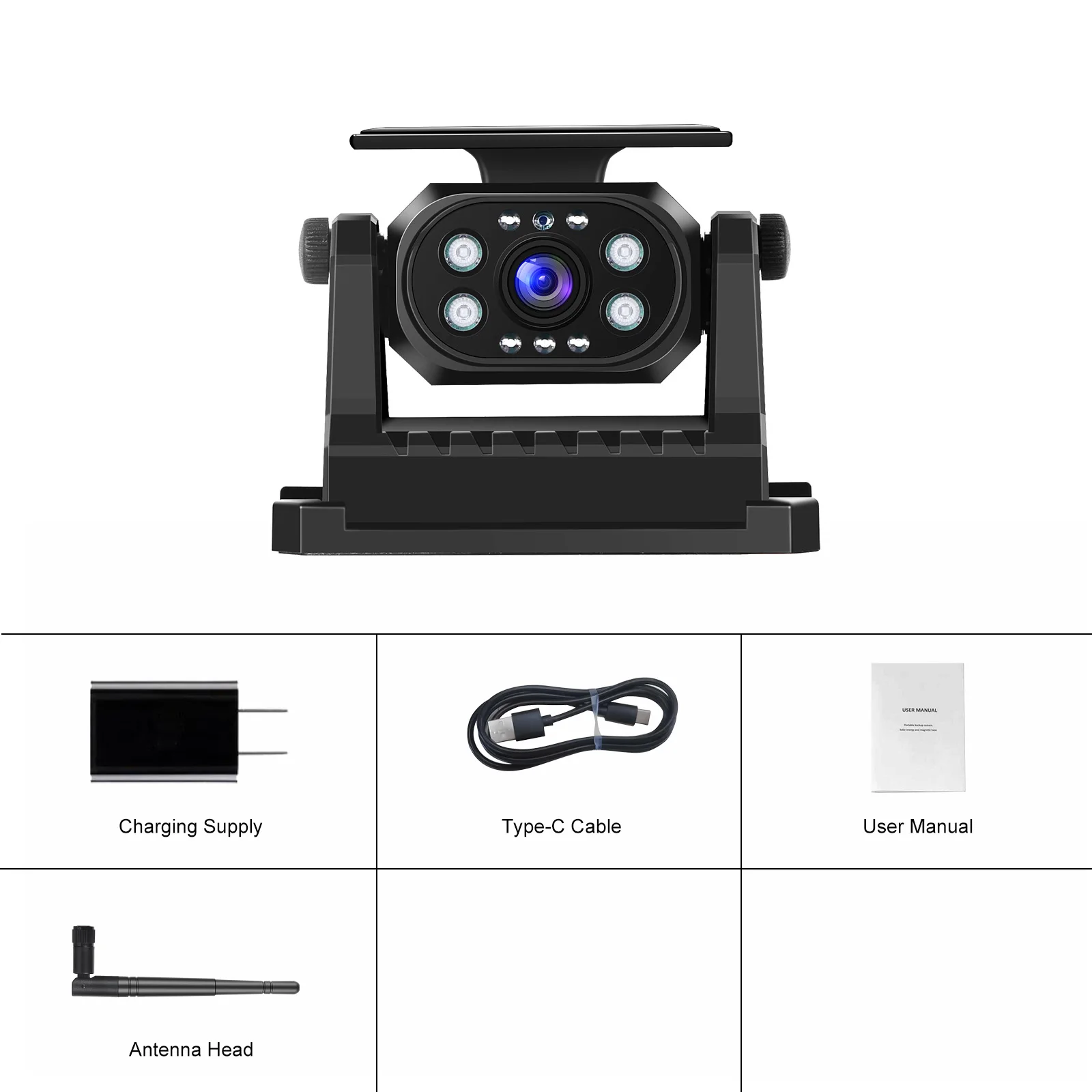 【Magnetic design】The bottom of the camera is equipped with 6 strong magnet, just attach the camera to the rear of the car or other places that can be adsorbed by the magnet, no more drilling installation, easy to take, do not worry about the safety of the camera. 1080P Night Vision Wireless WiFi camera Night Vision Image: Automatic gain control, automatic white balance, automatic backlight compensation Signal to Noise Ratio:≥69dB Operating Temperature:-22°F~176°F Pixel:1080P Minimum Illumination: 0.01Lux Video Signal:2.4G WiFi Material:Metal Image Horizontal Resolution:200W Battery: 10,000 mah Battery type: 18650 lithium batteries
