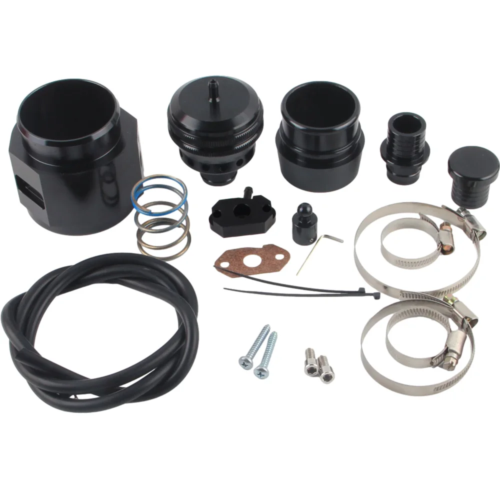 The dump valve for the 2015-on 1.2 TSI engine codes CJZA, CJZC, CJZD, CYVB as found in the VW Golf, VW Polo, A1,A3, Seat Ibiza and Seat Leon. The 1.2 and 1.4 TSI doesn't have a dump valve from the factory, so this product allows you to have the traditional dump valve noise between gear changes and when letting off the gas pedal. It won't bring on any check engine lights and the car will drive just as before. This kit totally replaces the plastic pipe from turbo to manifold with a silicon hose and everything else you need to install the valve is included in the kit together with full instructions.