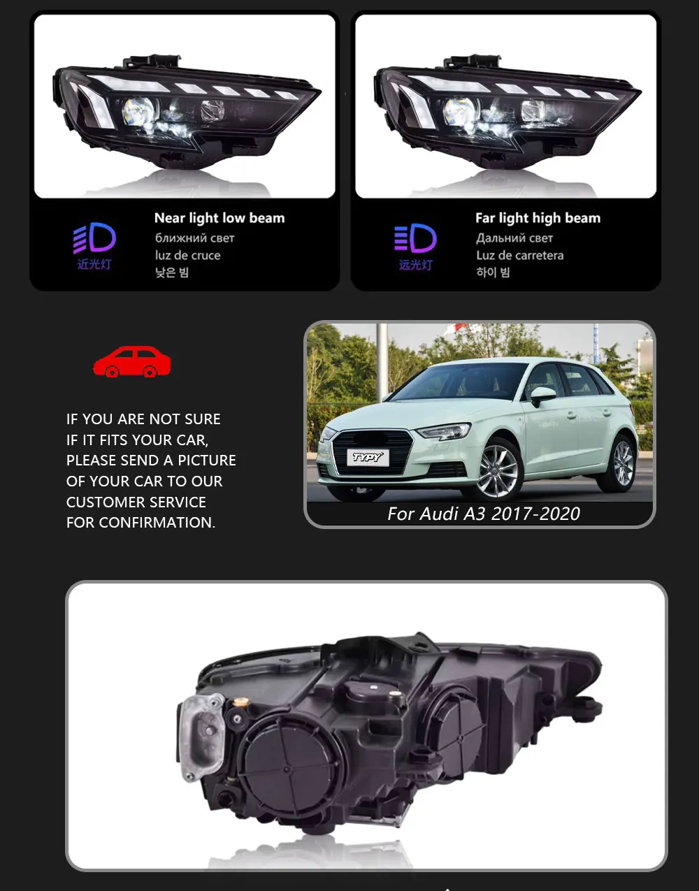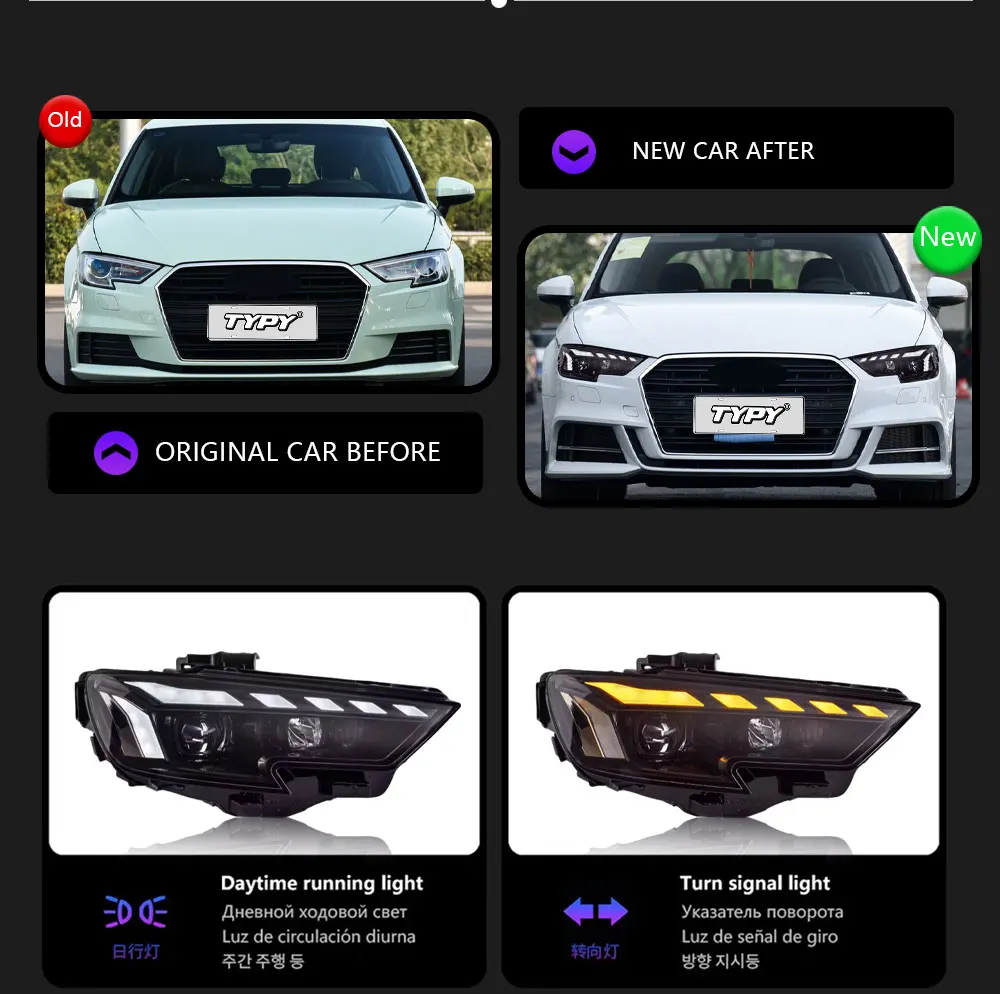 I-TYPY Car Lights For Audi A3 Headlight 2017-2020 LED Projector Headlights DRL Sequential Turn Siganl Car Accessories